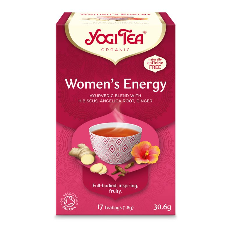 Yogi Tea® Sievietes enerģijai ir iedvesmojoša un dzīvīga tēja ar hibisku, aveņu lapām un žeņšeņa saknes ekstraktu. Šī tēja veicina enerģijas pieplūdumu ķermenī un garā.